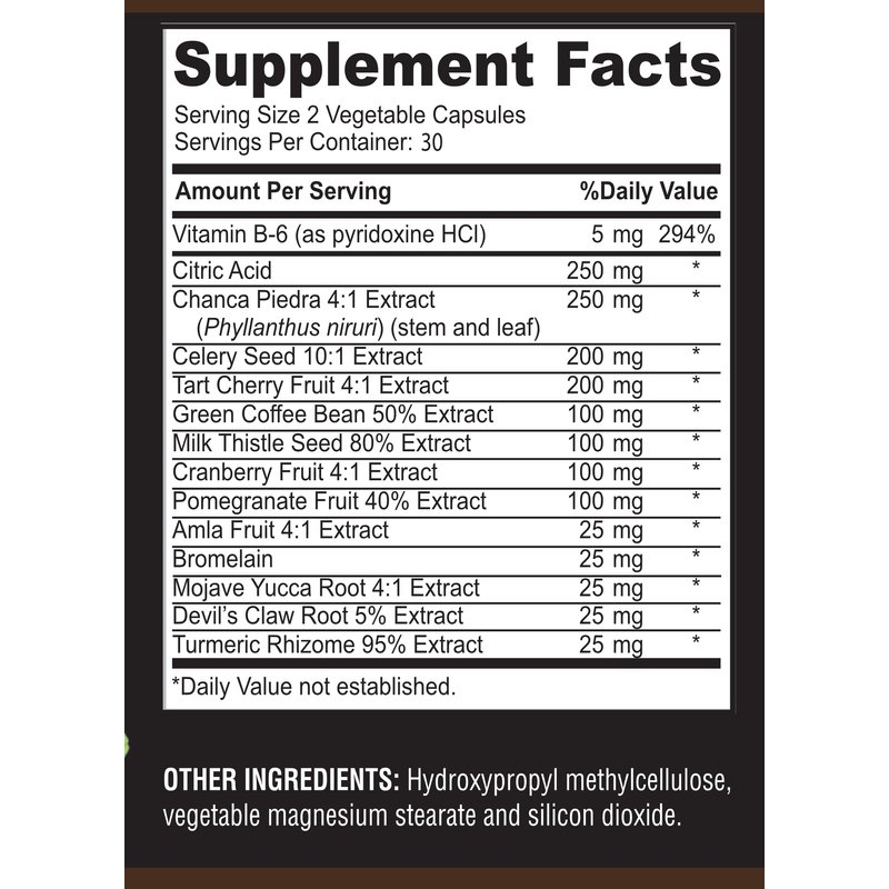 Our Uric acid supplement can help lower and balance Uric Acid to healthy levels. It has natural herbal ingredients such as Cranberry, Chanca Piedra, Tart Cherry, Milk Thistle and Pomegranate that cleanse and promote healthy kidney, liver, gallbladder and urinary tract health.