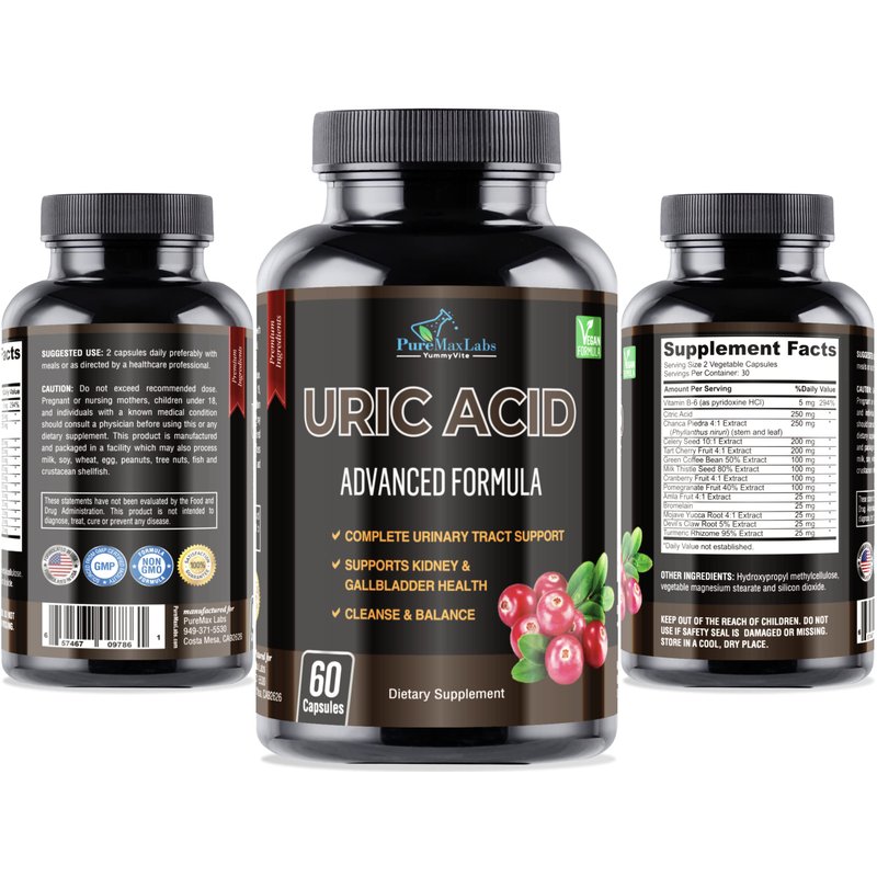 - HIGH QUALITY MADE IN USA IN GMP CERTIFIED FACILITY — PureMax Labs Uric Acid Advanced Formula is made in the USA in a FDA inspected, Good Manufacturing Practice Certified facility from premium natural ingredients with no artificial ingredients or preservatives. You can be assured of consistent high quality.