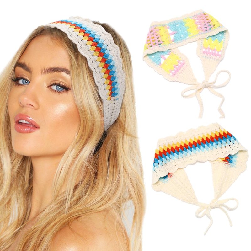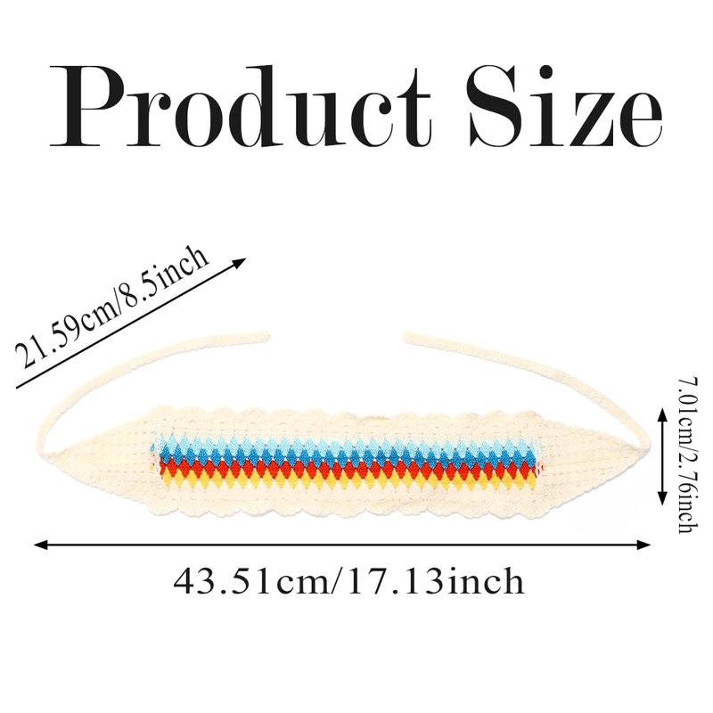 - The hippie headband has 2 colors to choose from,the pattern design of rainbow knitted hair bandanas incorporates geometric shapes and color blocks, creating a visually appealing and eye-catching look.