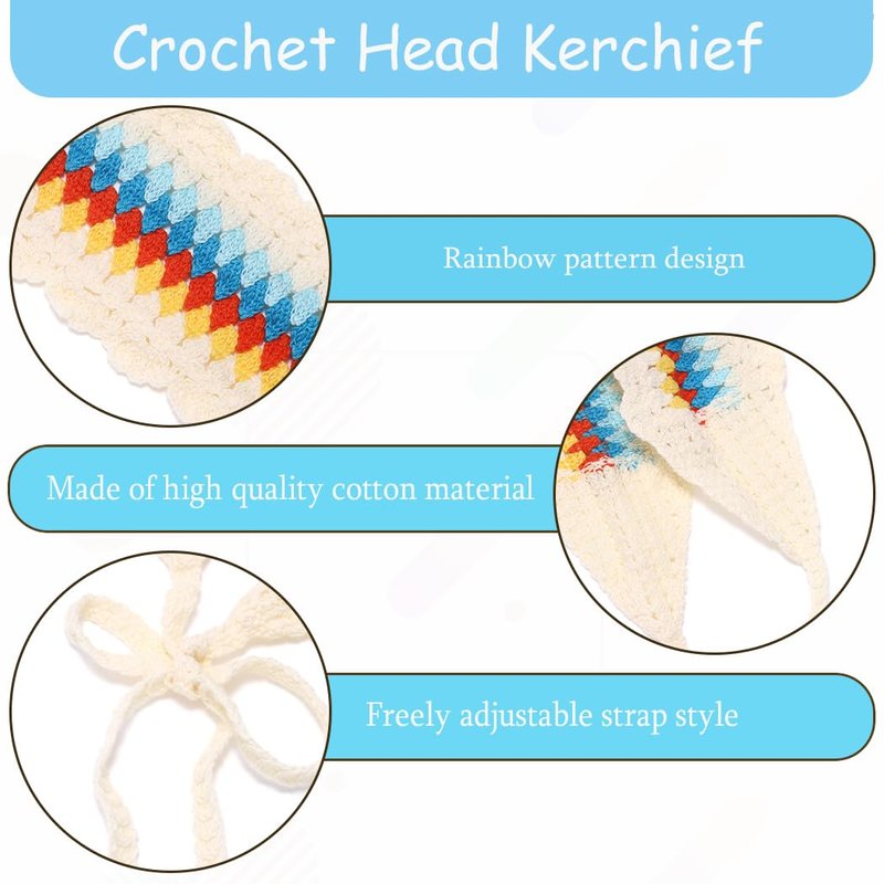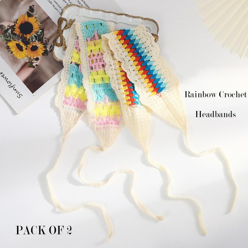 Urieo 2 Pcs Rainbow Crochet Bandana Headband Knitted Hair Scarf Hair Bandanas Daily Party Tie-back Head Kerchief for Women Girls