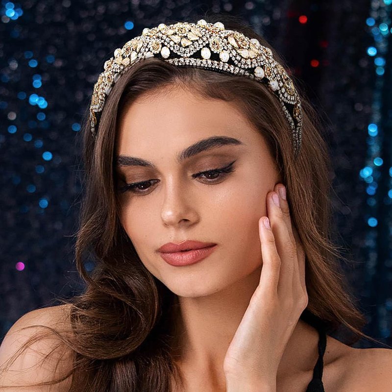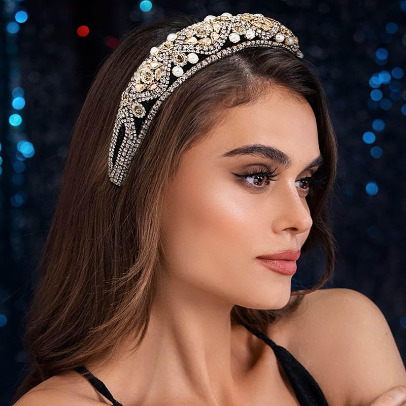 - Pearl hairband for Women combines a stylish design with practicality. The crystal and rhinestones outer layer and foam inner layer provide a comfortable and soft feel close to the scalp.