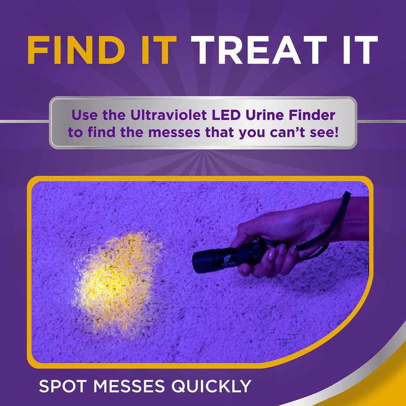 - LED PET URINE FINDER — Pet urine detector light is a custom engineered, ultraviolet flashlight to illuminate uric acid to spot urine stains and dry urine. Batteries not included.