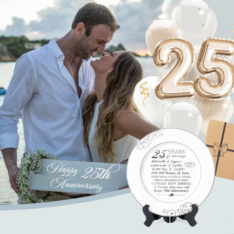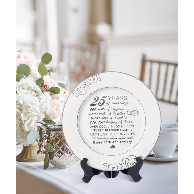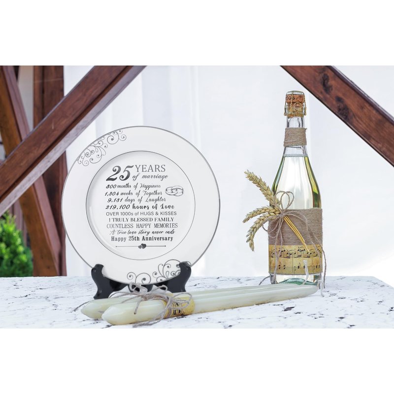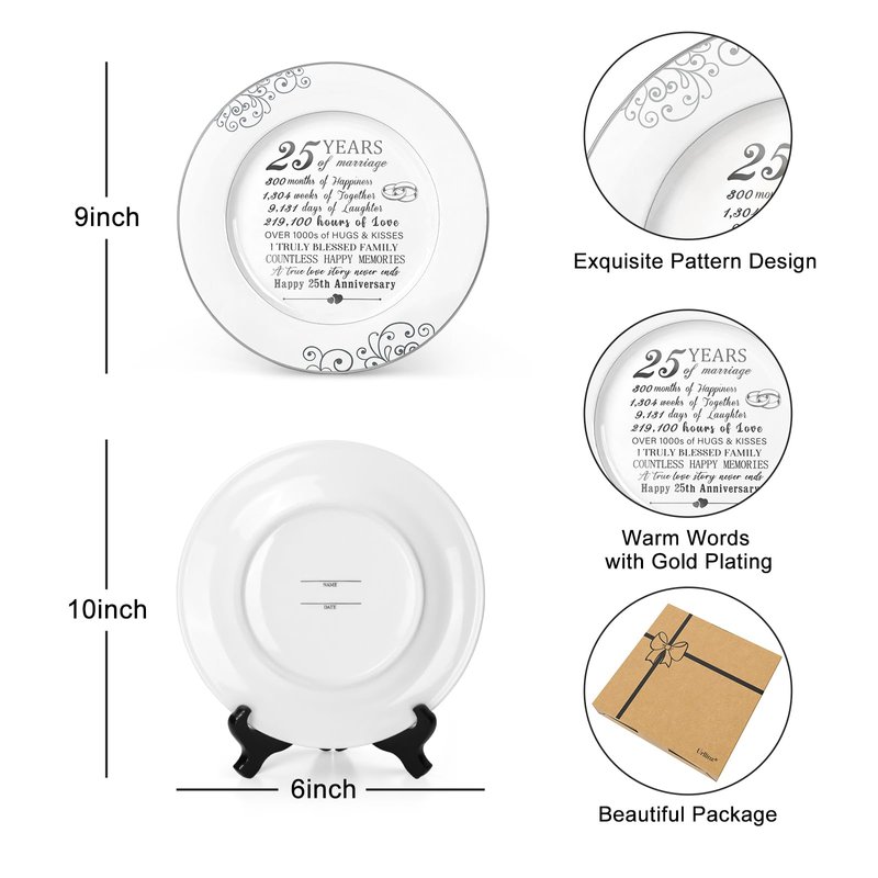 - PRECIOUS & DURABLE 25 YEAR ANNIVERSARY DECORATION - This 25th Anniversary Plate features exquisite platinum decorations and crafted from high-quality ceramic with durability and oxidation resistance. This plate is built to withstand the test of time, maintaining its beauty and luster, making it a long-lasting and meaningful item.