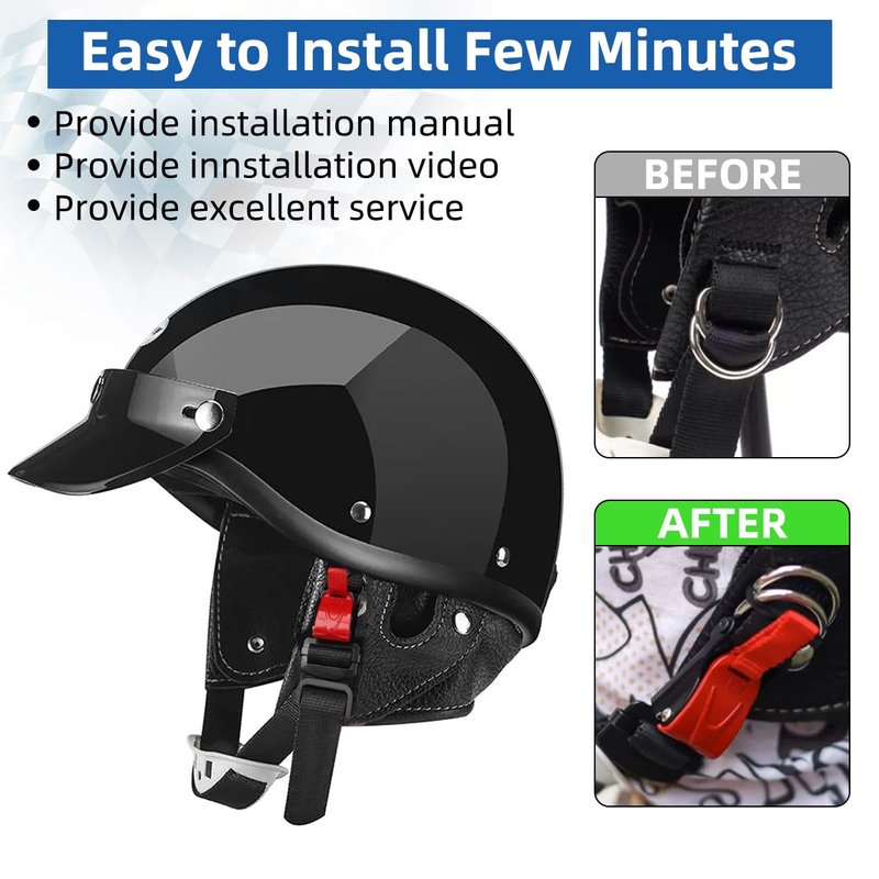 - 🏍【Perfectly Compatible】:The upgraded motorcycle helmet quick buckle kit fits up to 1″ Chinstrap compatible with half helmets, 3/4 helmets, open face helmets and full face helmets,which perfectly replaces double ring and snap closure.Whether you're a motorcycle rider, cyclist, or avid sports enthusiast, this is very suitable for you!