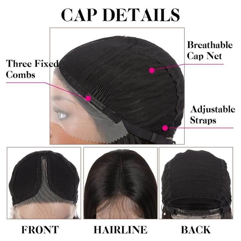 - 【Wig Cap】Average size, about 21-23 inch of circumference, with 2 adjustable straps and 3 combs easy to install and adjust, can help you fix your head size well. Cap net is strong and breathable.