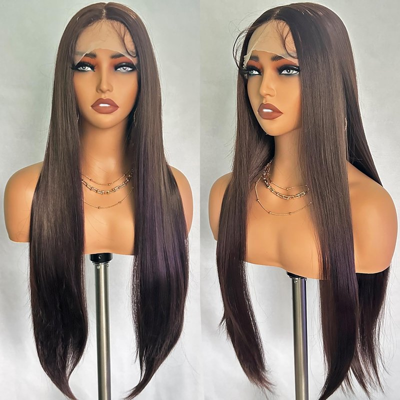 - 【Magic Wig Info】 32 inches long straight lace front wigs, just about 0.71lb, silky and soft. Color is Chocolate Brown #4.