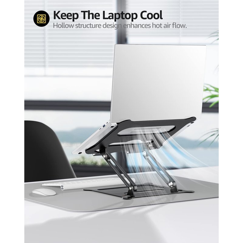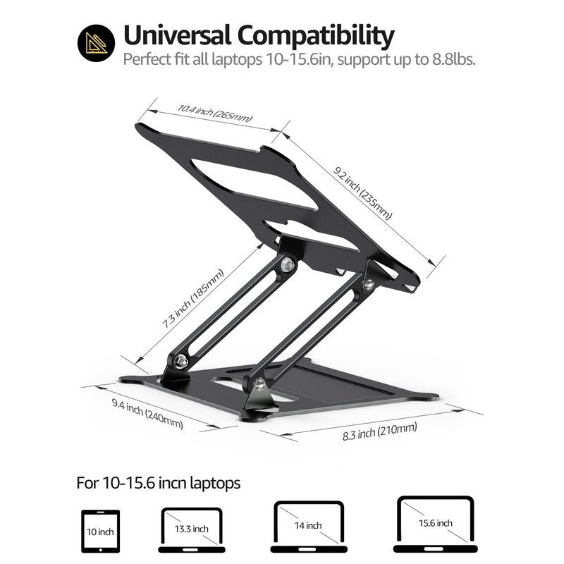 Adjustable laptop stand is made of premium Aluminum alloy, it is sturdy, support up to 8.8 lbs(4kg), no worry any wobble at all;