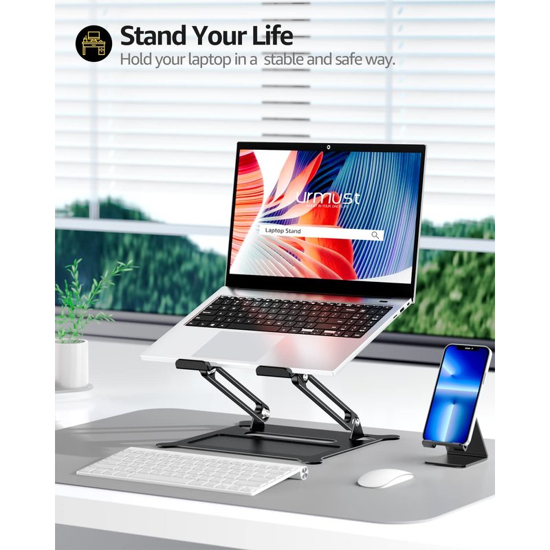 - Protective Stable and Foldable: Urmust Adjustable Laptop Stand is sturdy to support up to 8.8 lbs(4kg); the rubber on the holder's hands sticks tightly, ensure your laptop stable on the stand and prevent any scratches.Foldable to save space for easy storage and designed handle hole for easy carrying.