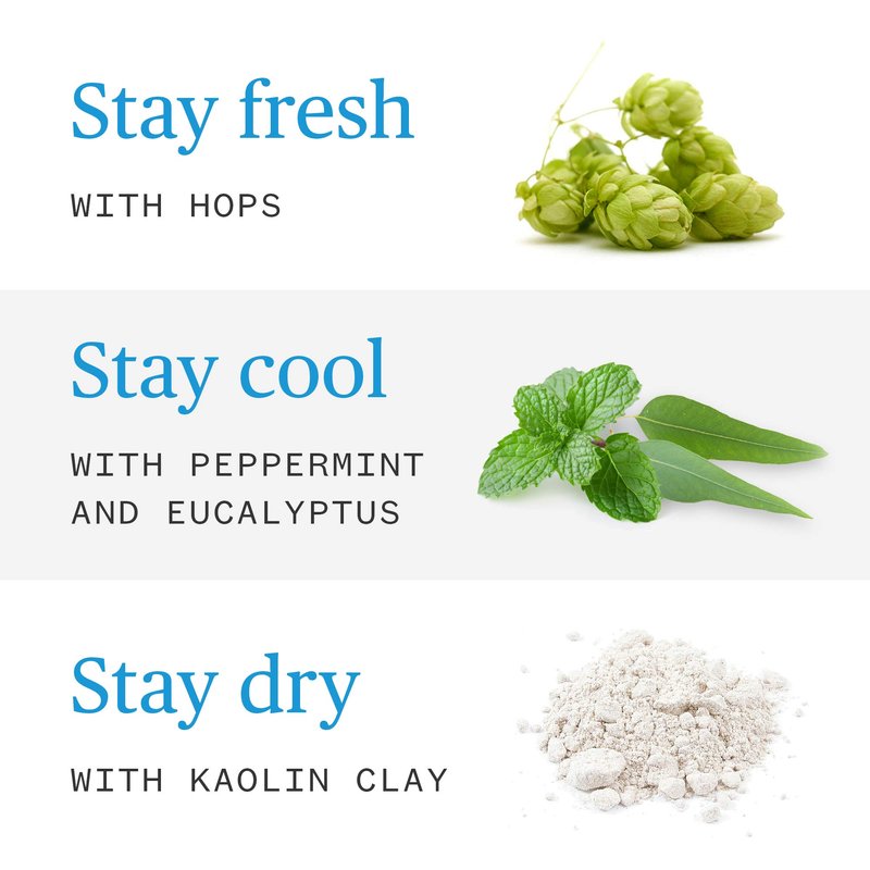 - HEALTHY, NATURAL INGREDIENTS- Formulated with 25 naturally-derived ingredients including odor-fighting hops, moisture-absorbing kaolin clay and soothing aloe vera.