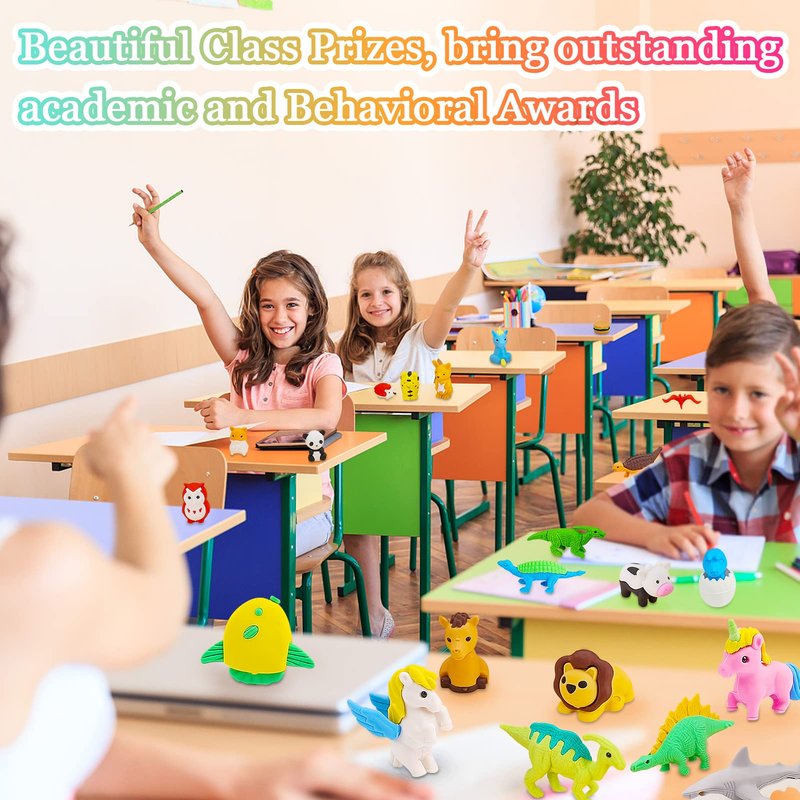 - FUN PARTY FAVORS: Work great as both animal erasers easter basket stuffers and Christmas party supplies, birthday party favor gifts, goody bag favors, fun game prizes, Pinata filler, classroom rewards, Easter egg fillers, kids Valentine’s Day gift, carnival gift,treasure box. These animal erasers desk pets goodie bags stuffers are adorable and bright in color, a must have for any treasure box, classroom treats , stocking stuffers or unicorn mermaid party favors.
