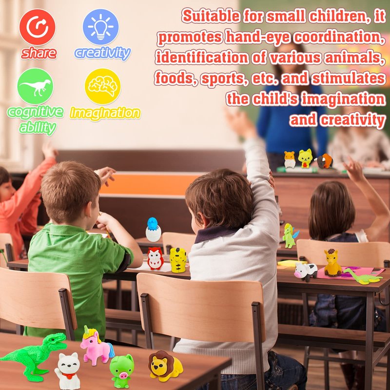- HIGH QUALITY&FUN EDUCATIONAL: Super kawaii puzzle erasers, being designed in various shapes of animal. Eraser made by non-toxic & high quality latex-free material , safe for kids.Best eraser toys for little kids to promote hand-eye coordination, recognize all kinds of animal inspire kid's imagination & creativity. Enjoy hours of fun with pencil erasers, make new friends in group play activities, Happy manipulative play