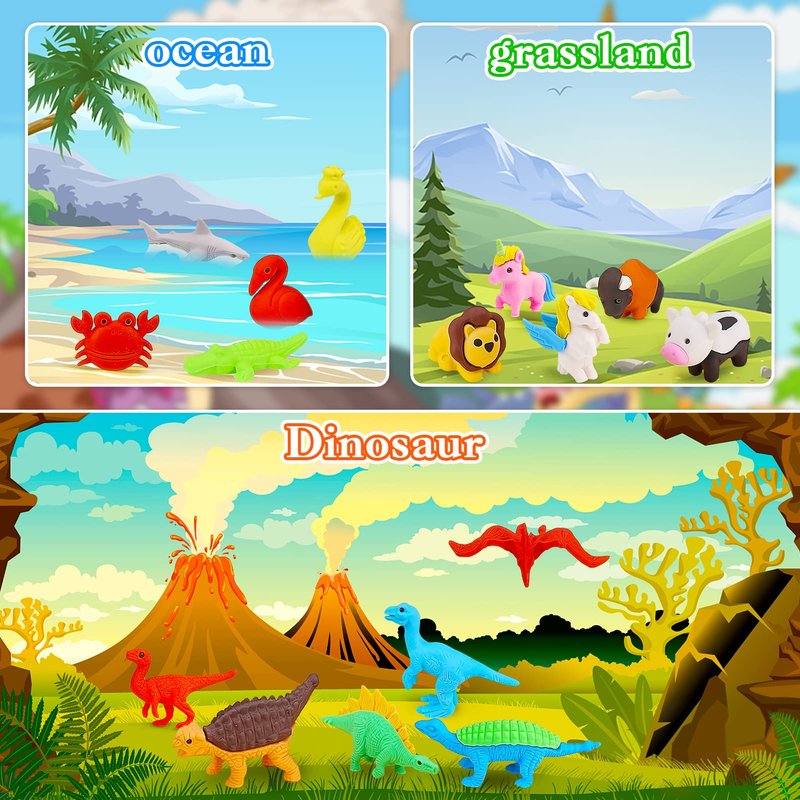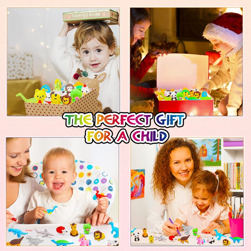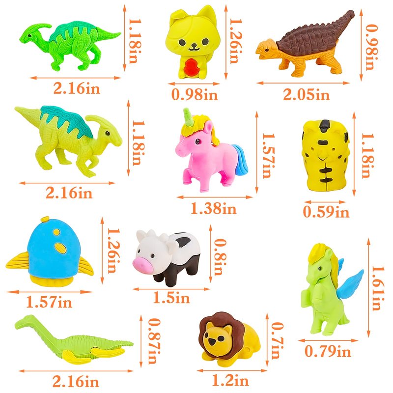 - FUN PARTY FAVORS: Puzzle food animal pencil erasers work great as both erasers and Christmas party supplies, School Supplies, birthday party favor gifts, goody bag favors, fun game prizes, Pinata filler, classroom rewards, Easter egg fillers, kids Valentine’s Day gift, carnival gift. Adorable and bright in color, a must have for any treasure box, trick-or-treaters, novelty toys, classroom treats , stocking stuffers or unicorn mermaid party favors