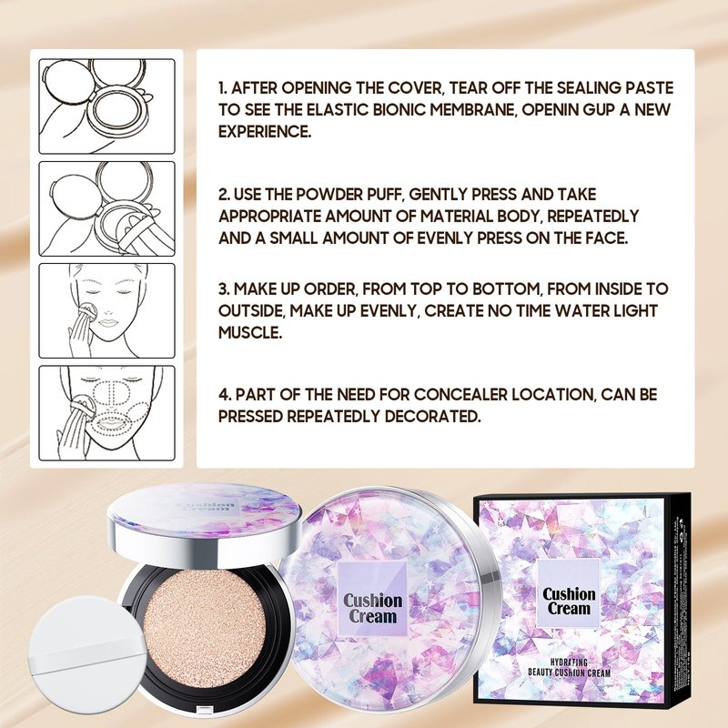 Mushroom head air cushion cc cream has a strong concealing power, which can well cover the blemishes of the face, such as spots, acne, small wrinkles, redness and so on. Invisible pores, evenly improve skin tone, make skin natural and delicate, suitable for any occasion.