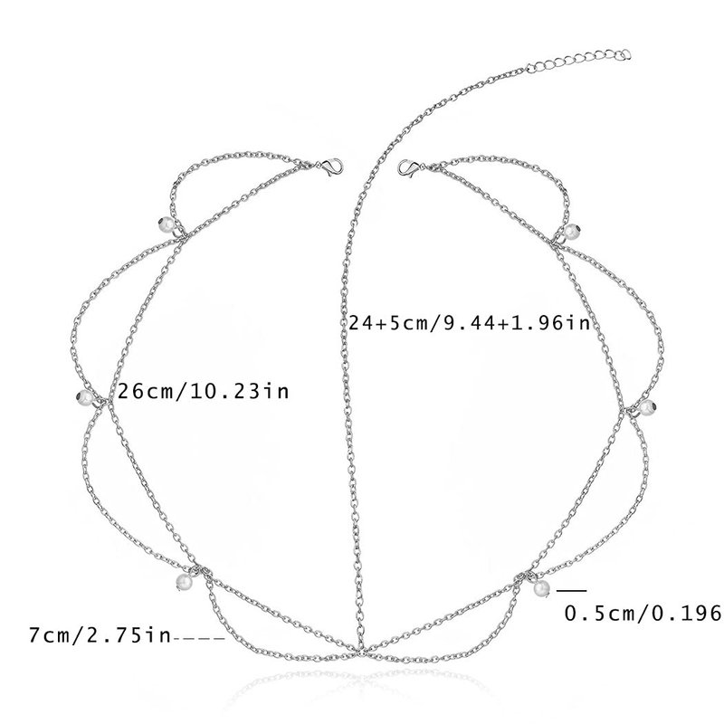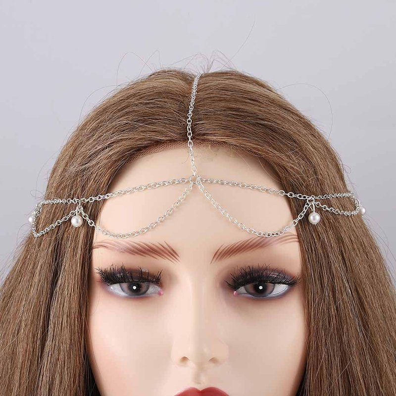 Ursumy Indian Hair Chain Festival Hair Jewelry Pearl Headchain Tassel Headpiece Wave Head Chain for Women and Girls (Silver)