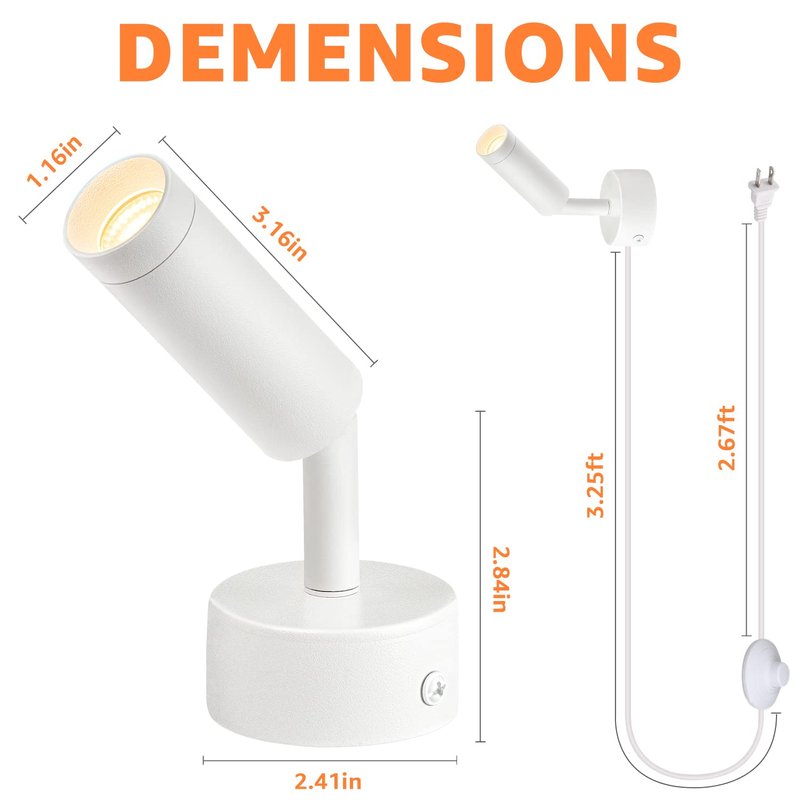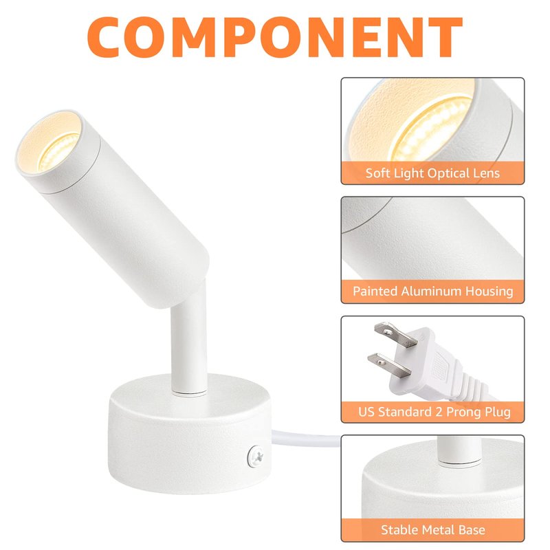 - ADJUSTABLE ANGLE & WIDE APPLICATION - 90° adjustable lighting direction to meet your lighting direction needs. Our white uplights are suitable for various indoor scenes, such as living room, bedroom, recreation room, theater room, dining room, loft, hallway, porch, pantry, etc.