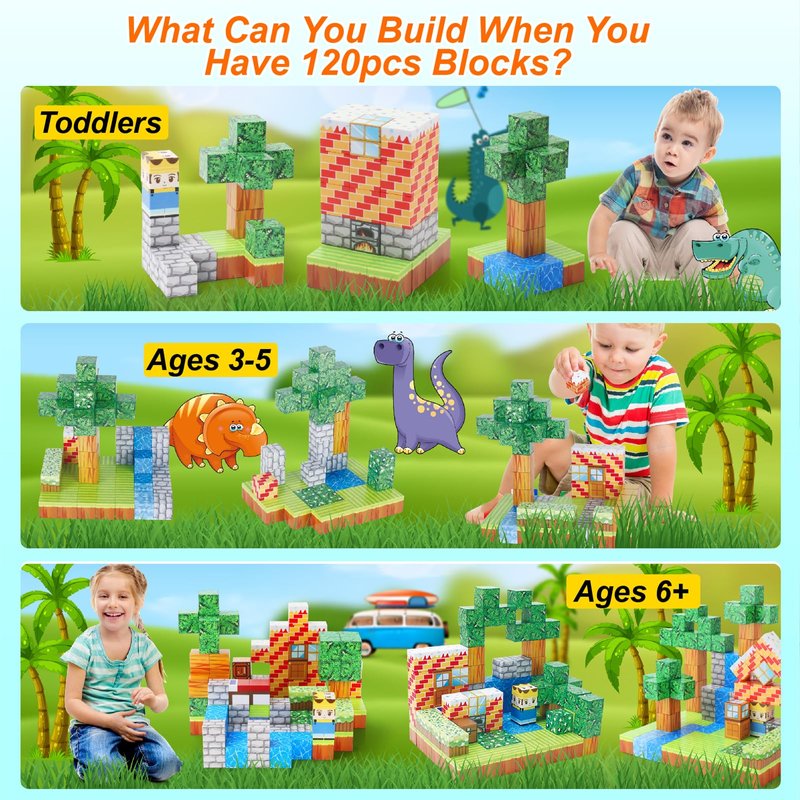 UrZoo Magnetic Blocks 120PCS Magnetic Building Blocks Toddler Toys for Kids 3+ Build Mine Magnet World Set STEM Buildable Sensory Toys for Toddlers Gifts for 3-5 6-8 Years Old Girls Boys