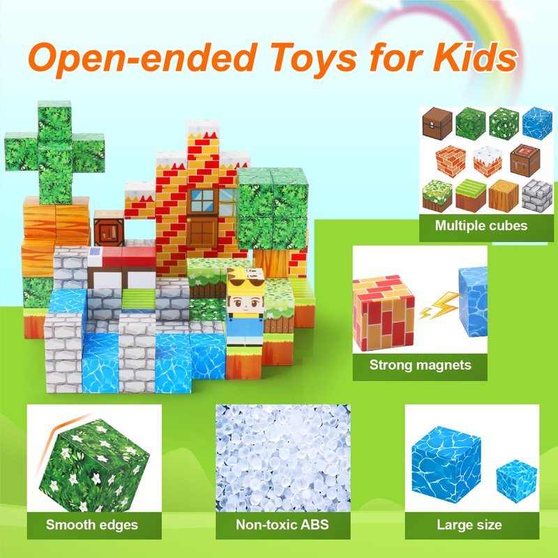 - Safe and Easy to Play: These magnet toys are made from high-quality non-toxic materials, tightly fitting cubes are designed with smooth, rounded edges, which are safe and easy for little hands to grasp, manipulate and bulid bulidings
