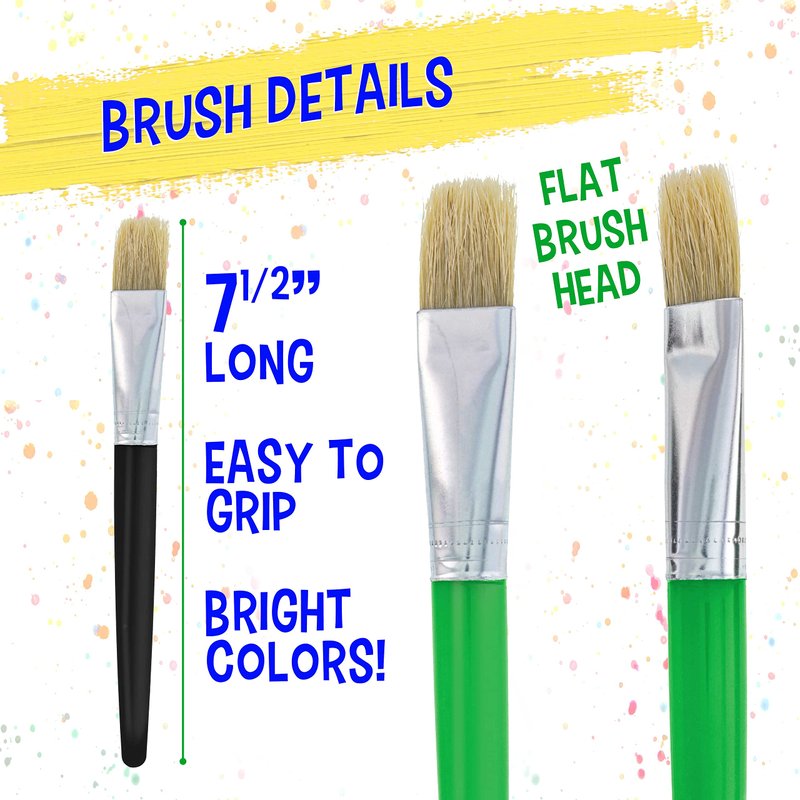 - A fun 10-piece set of children's large flat paintbrushes that are ideal for tempera paint and have bright-colored handles and ferrules for easy identification when kids use them.