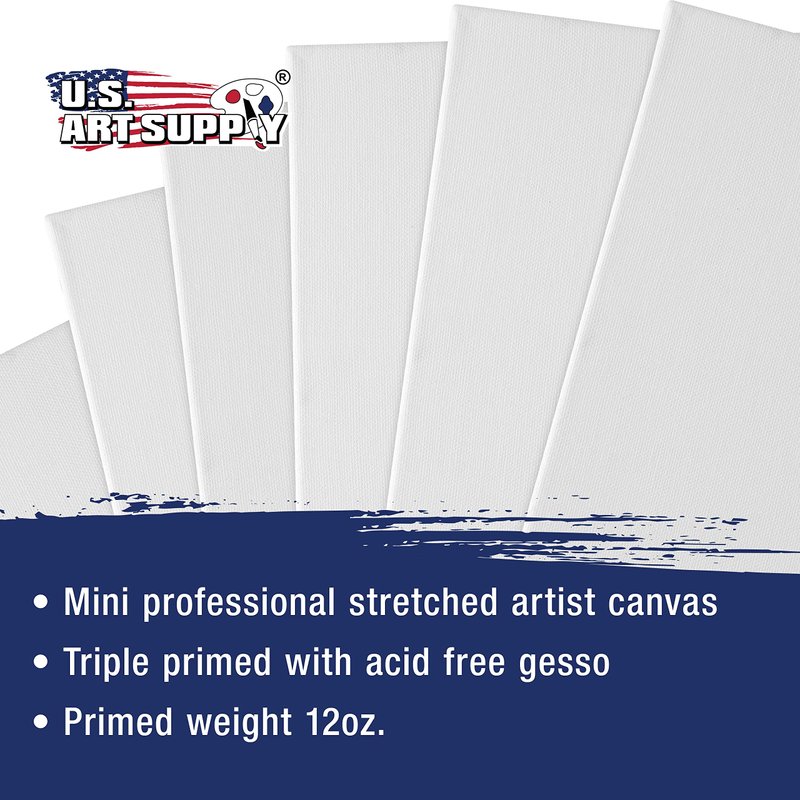 U.S. Art Supply 3" x 3" Mini Professional Primed Stretched Canvas (1-Pack of 12-Mini Canvases) - Ideal for Painting & Crafts
