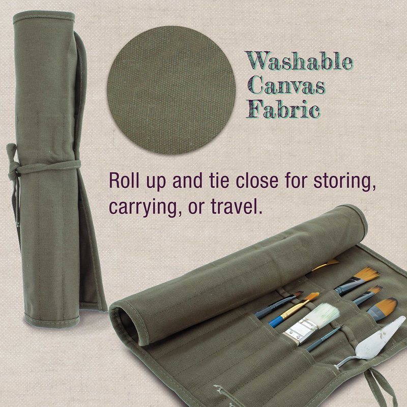 - A high-quality canvas 24 slot artist paintbrush holder and storage organizer case that can simply be rolled up and tied closed for storing, carrying, or travel. Brushes shown in images are not included!
