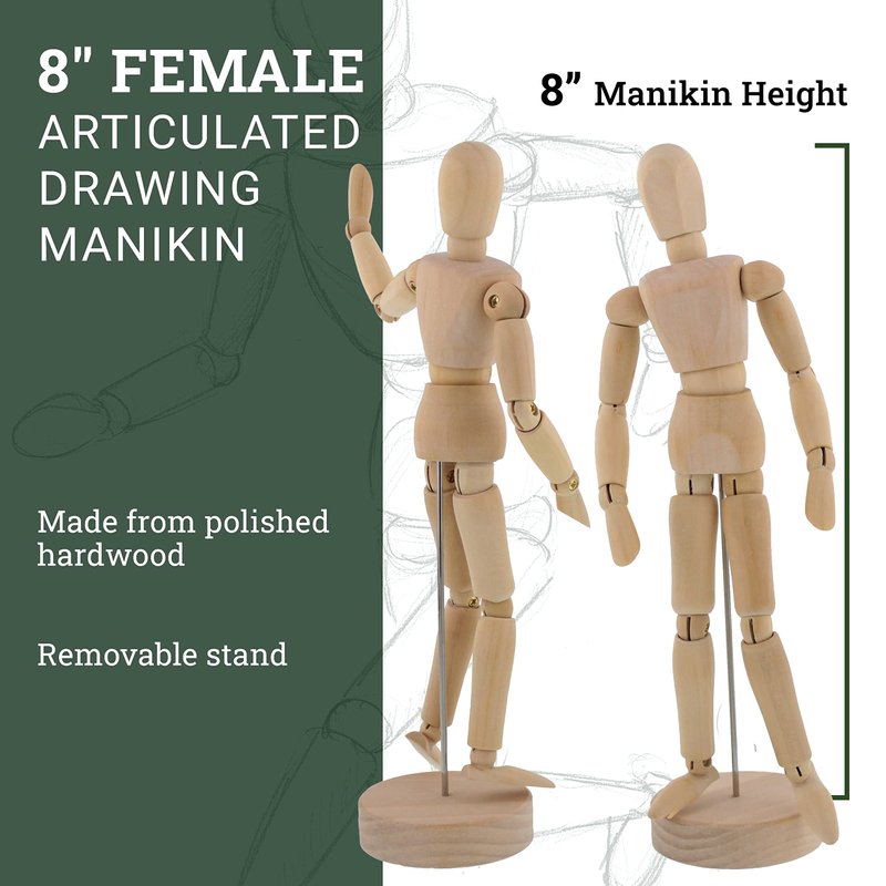 US Art Supply® Wood 8" Female - Artist Drawing Manikin Articulated Mannequin with Base and Flexible Body - Perfect for Drawing The Human Figure (8" Female)