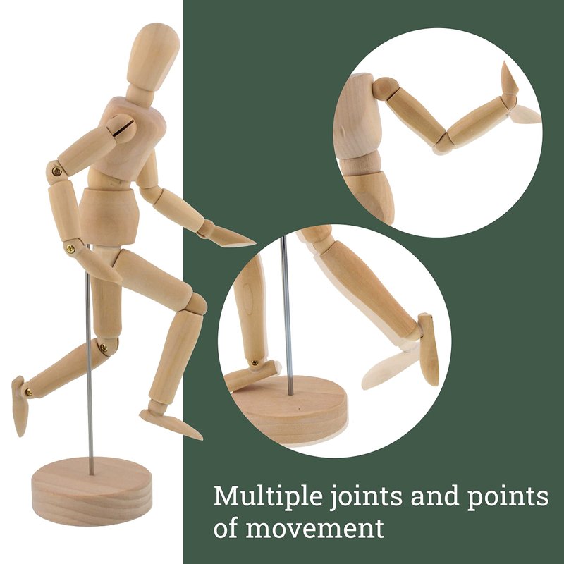 Manikins are useful tools for learning to draw. These are accurately proportioned, and they are flexible enough to mimic many human positions. Each is made of unvarnished hardwood and comes with a stand.