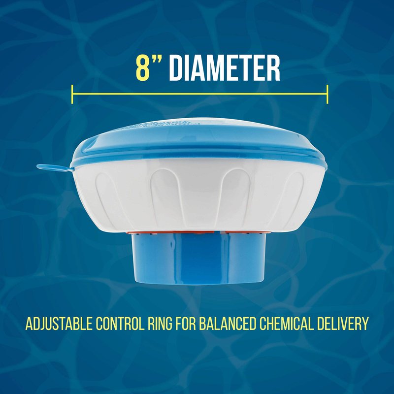 - Has adjustable control ring for worry-free balanced chemical dispersion. Ideal for keeping your pool or spa ready to use and free from contaminants and foul odors.
