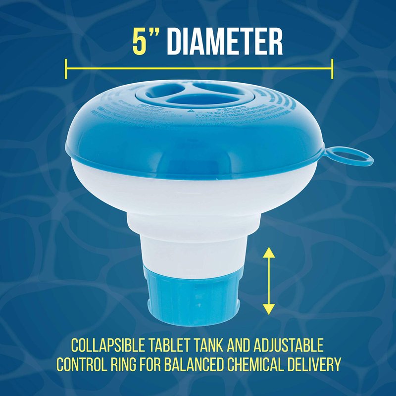 U.S. Pool Supply Pool & Spa Floating Chlorine & Bromine 1" Tablet Chemical Dispenser, 5" Diameter, Collapsible Floater