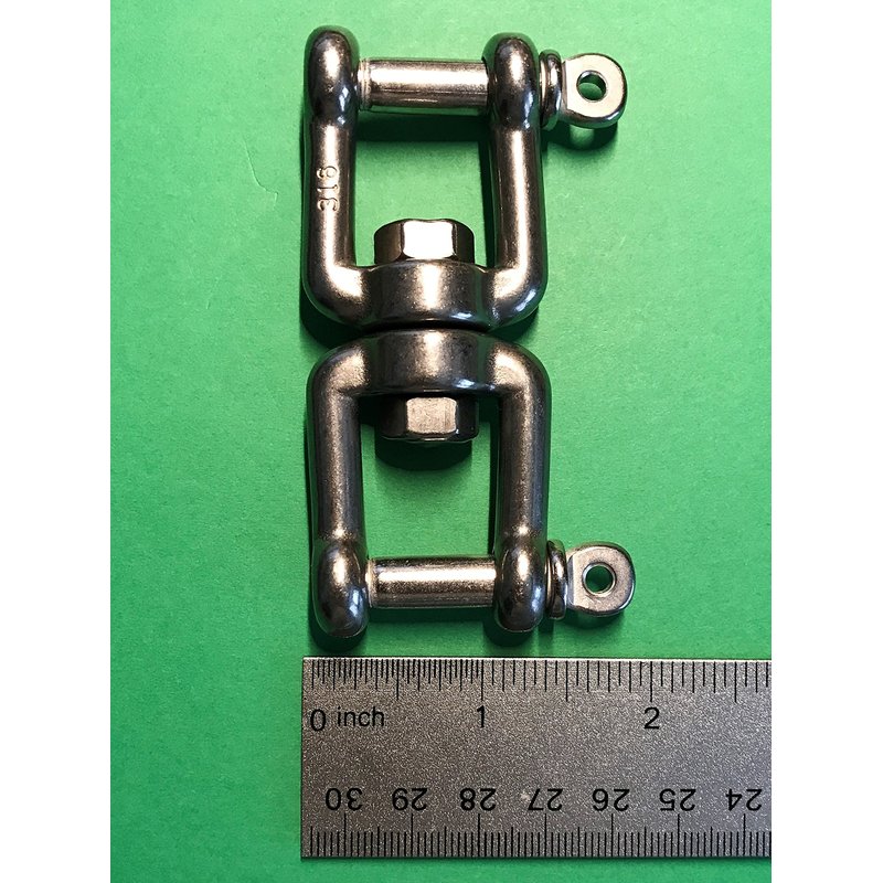 This is for one (1) quality marine grade stainless steel (AISI 316) anchor swivel with jaw and jaw. Each swivel is stamped 316 and laser etched showing both the grade of 316 and the size 5/16". The swivels are marked in the imperial specification style of 5/16". The metric equivalent is generally considered to be 8mm. Not to be used for overhead lifting. AISI 316 stainless is a premium grade of stainless and is considered by many to be best in class. 316 stainless is corrosion resistant and very durable even in the harshest of conditions. Breaking Load 4180lbs