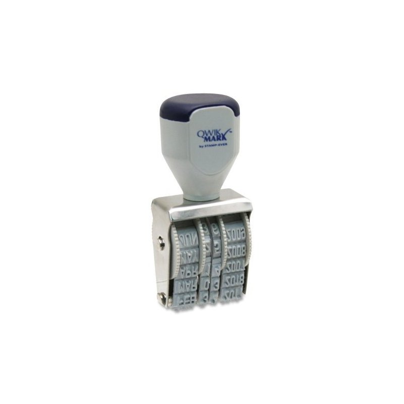 Reliable rubber stamp offers 10 years of dates for long life. Heavy-duty steel frame stands up to active use. Four-band date: months, days, and 10 years. Adjustment wheels makes changing the date simple and neat. Requires separate ink pad. Stamp Type: Dater; Ink Types: Conventional; Type Size(s): 1 1/2; Number of Bands: 4.