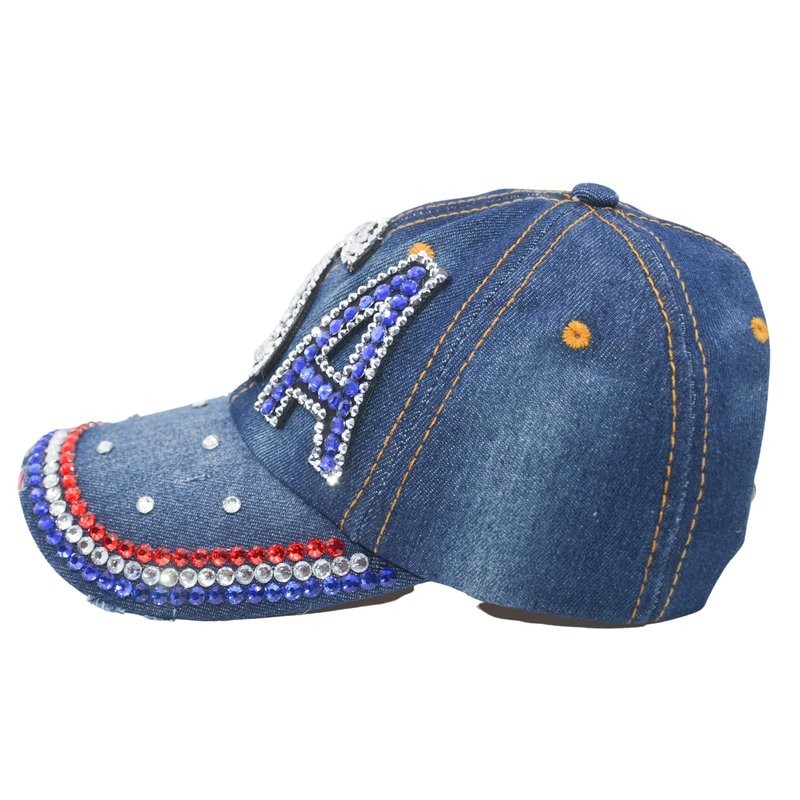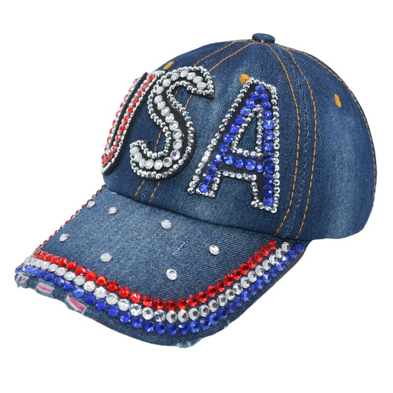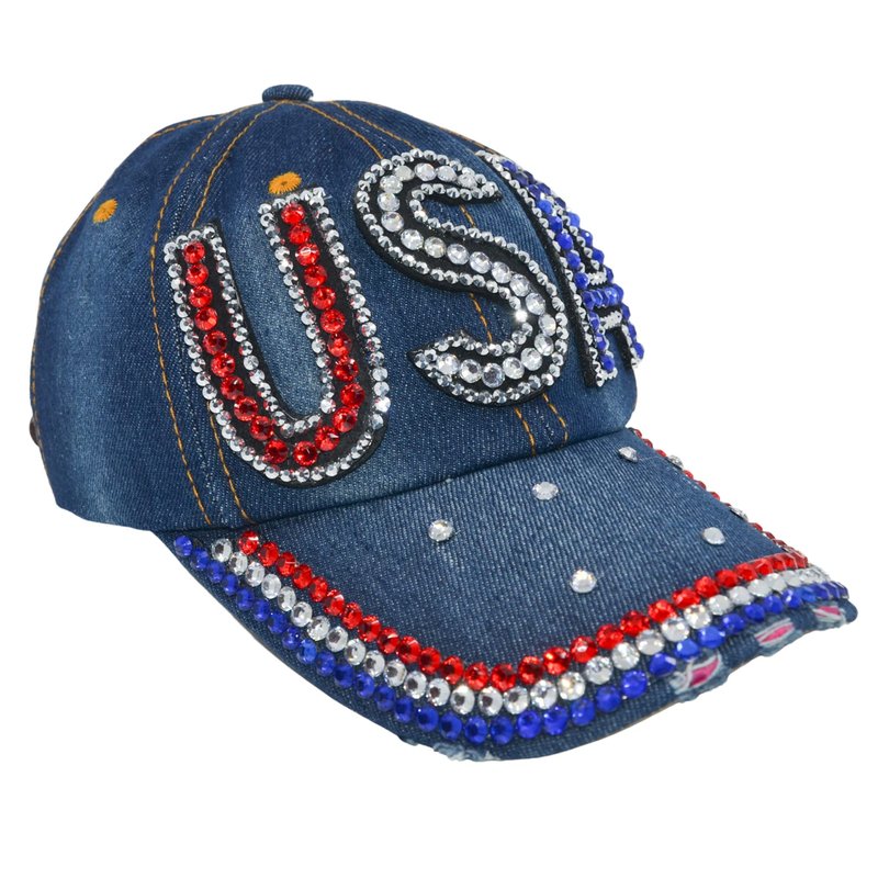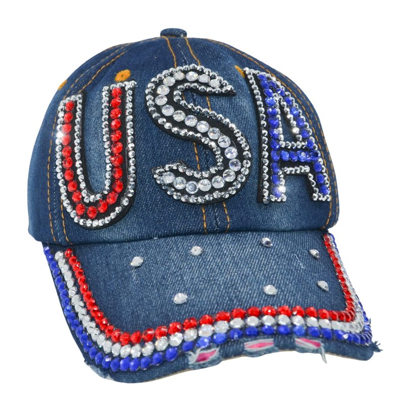 USA Hat Women’s Distressed Bling Rhinestone Patriotic Baseball Cap