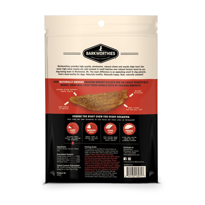 - IRRESISTIBLE SMOKY BBQ FLAVOR: Give your dog a delectable smoky treat they won’t be able to keep their paws off of. Our chicken fillets are naturally smoked in our state of the art Richmond, Virginia USA smokehouse with a mouthwatering BBQ flavor that dogs just can't get enough of.