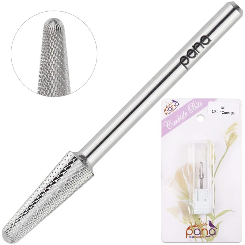 USA PANA Professional 3/32" Shank Size - Cone Shape Carbide Bit - Nail Drill Bit for Manicure Pedicure Tools Dremel Machine - Gold, Silver (Extra Fine, Silver)