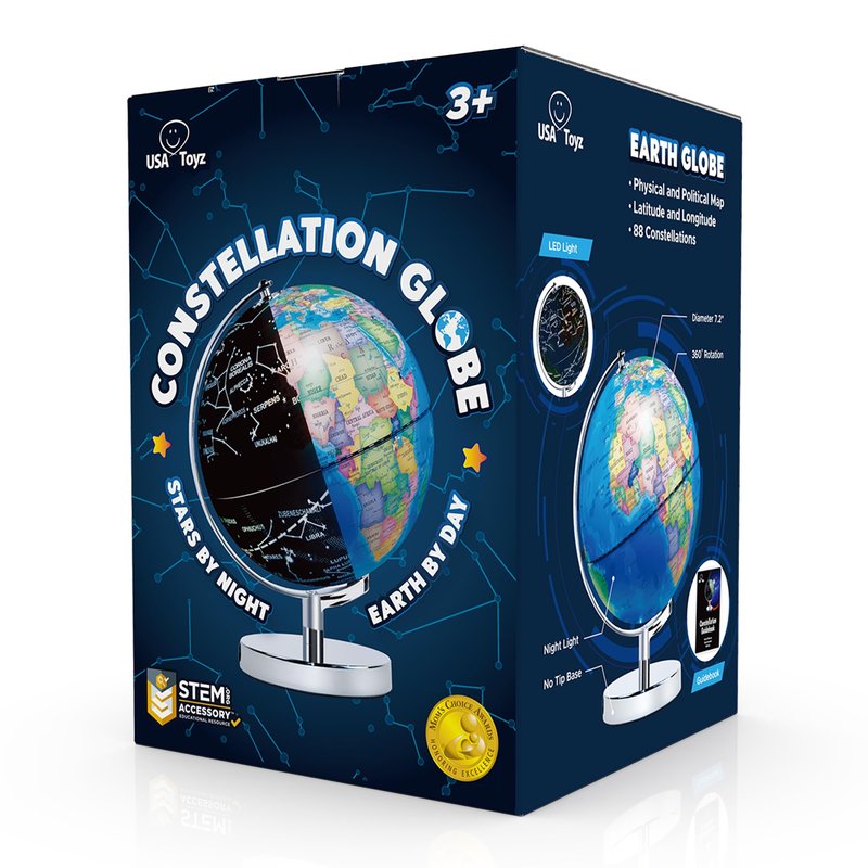 - EDUCATIONAL GLOBE LIGHT: With the USA Toyz globe for kids learning, discover 88 constellations, stars, and navigational lines in the dark and gain in-depth knowledge by using the bonus interactive globe app and an illustrated constellation globe booklet. Make science learning time fun, use this STEM educational globe to experience the marvels of both earth and night sky!
