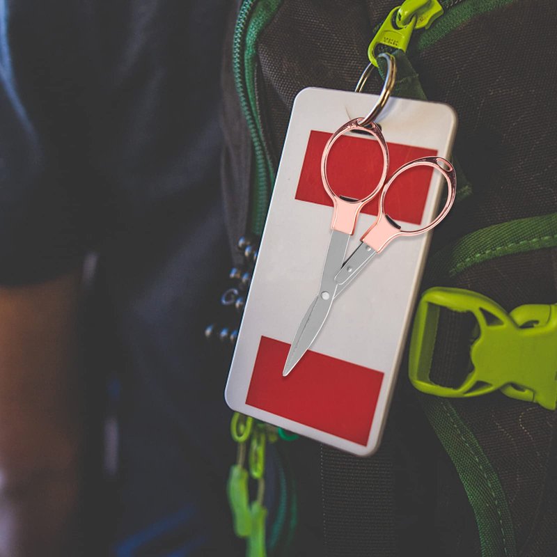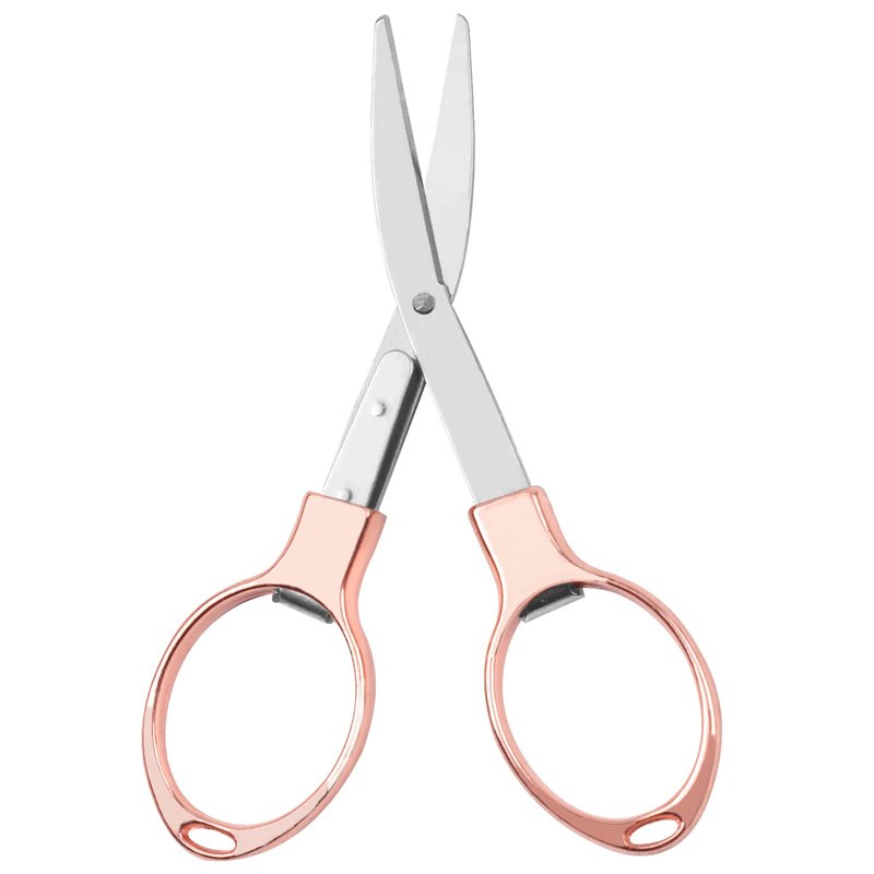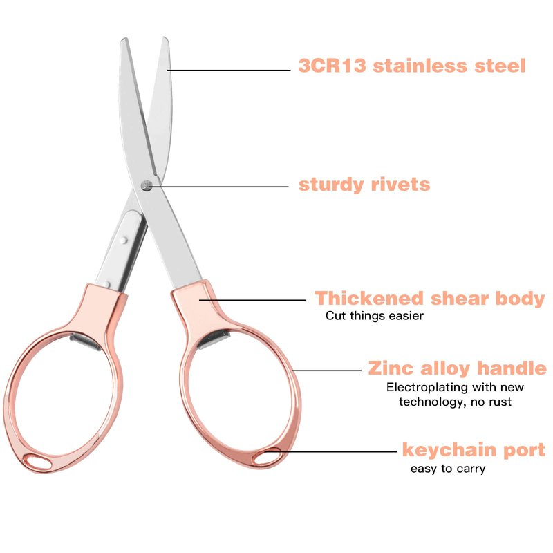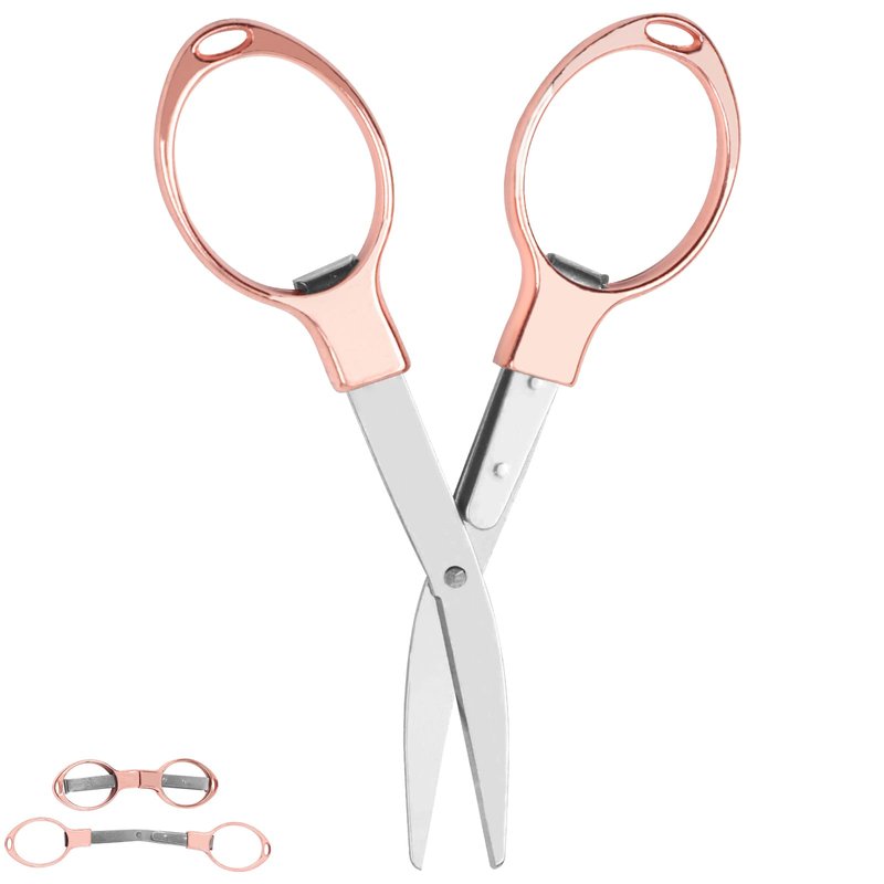 Usaidon Folding scissors (rose gold),Mini scissors stainless steel scissors safe and durable 1pcs, home study office camping outdoor fishing manual can be used, easy to carry