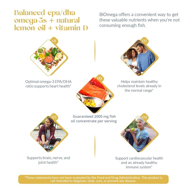 USANA BiOmega Fish Oil Supplement with Omega 3 Fatty Acids to Support Heart, Brain, Eye, Skin, and Joint Health* - 56 Capsules - 28 Day Supply