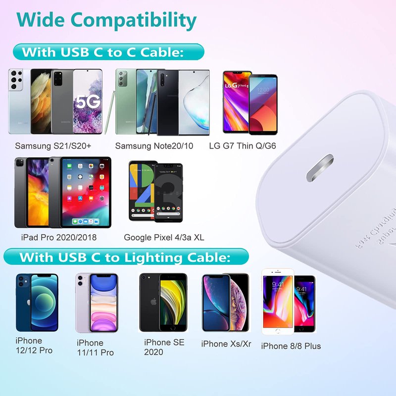 - · ►【Universal Type C Wall Plug Adapter】Type c charger fast charging equipped with PD technology, provide super fast charging for iPhone 16/iPhone 16 Plus/iPhone 16 Pro/iPhone 16 Pro max/iPhone 15/iPhone 15 Plus/iPhone 15 Pro/iPhone 15 Pro Max/iPhone 14/iPhone 13/Phone 12/12 Mini/12 Pro/12 Pro max/iPhone 11/11 pro/11 pro max/XS/XS Max/XR/X, iPad Pro 12.9 Gen 5/4/3 in 2021/2020/2018, iPad Pro 11 Gen 2/1, iPad Air 4, Galaxy S23/S23 Ultra/S23 Plus/S22/Z Fold3/S21/S21+/S21 Ultra/S20/Note 20/20 Ultra/Note 10, Google Pixel 6XL/5 XL/4 XL more USB C devices.