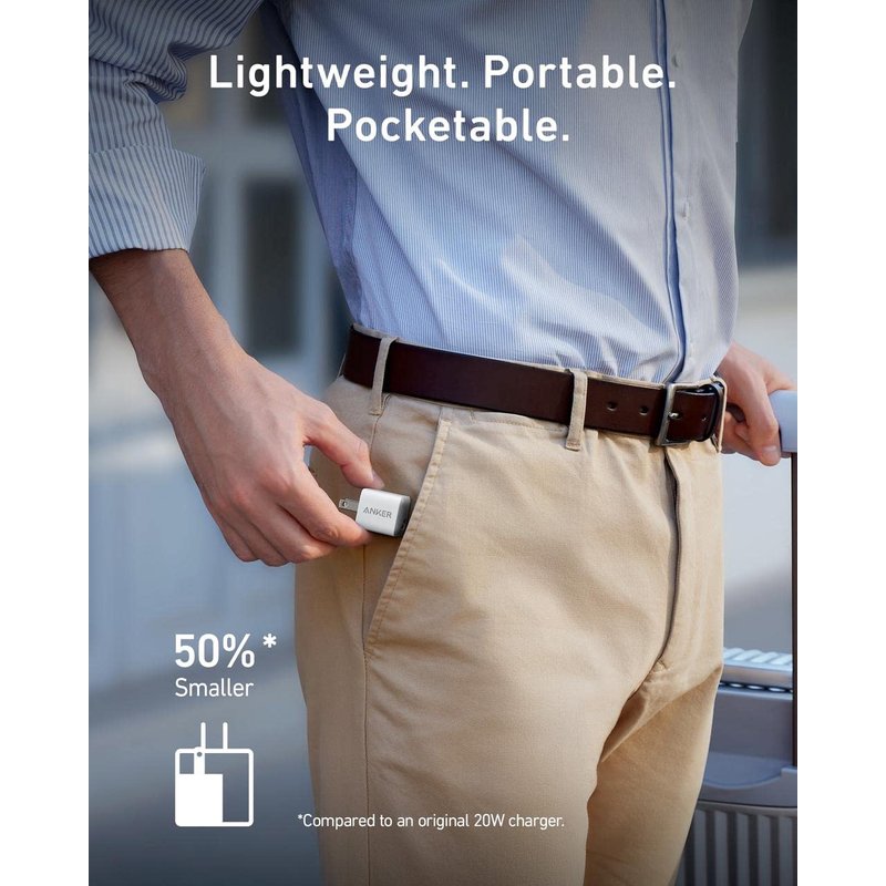 - Space-Saving Design: At 50% smaller than a standard 20W iPhone charger, Anker Nano provides more power while saving space in your bag or while plugged into a wall outlet