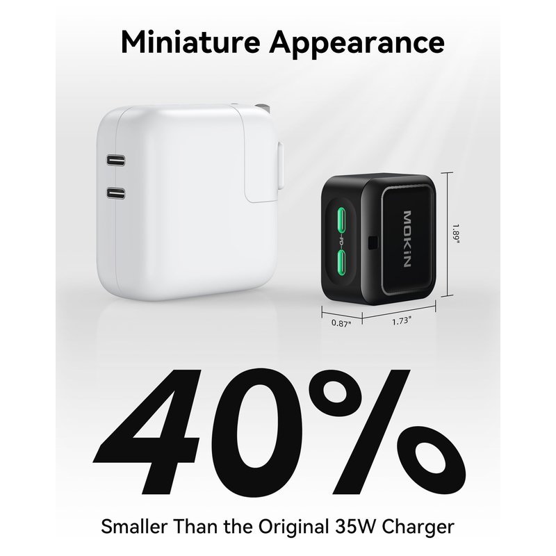 - 【Compact and Portable】:Weighing only 2.47 ounces, this USB C fast charger features an ultra-compact and lightweight design that is 40% smaller than the original 35W charger, the durable ABS shell prevents scratches and has foldable prongs