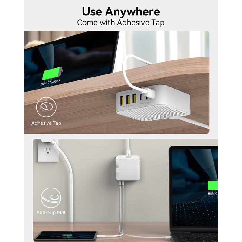 - ✅【Secure Everywhere with Anti-Slip Pads and Adhesive Tape】Equipped with anti-slip pads and double-sided adhesive tape, the multiport USB power strip guarantees secure placement on any surface—desktops, walls, nightstand or even under desks, satisfying all your usage scenario needs.