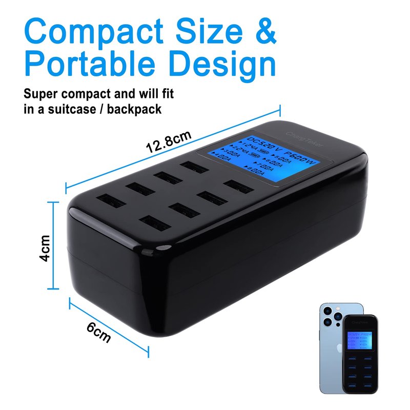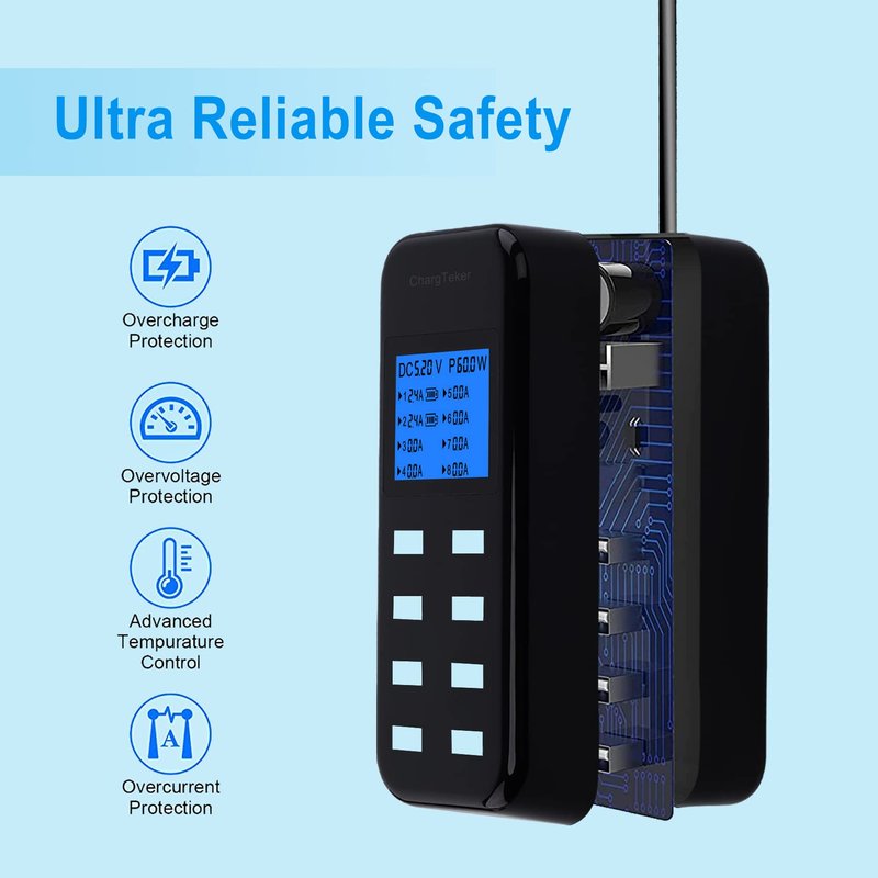- 【LCD DISPLAY】USB charger hub will intelligently detect and deliver the appropriate charging current for each device, with high-resolution LCD Digital Display screen, now you can visually monitor the current and the charging status through your naked eyes.