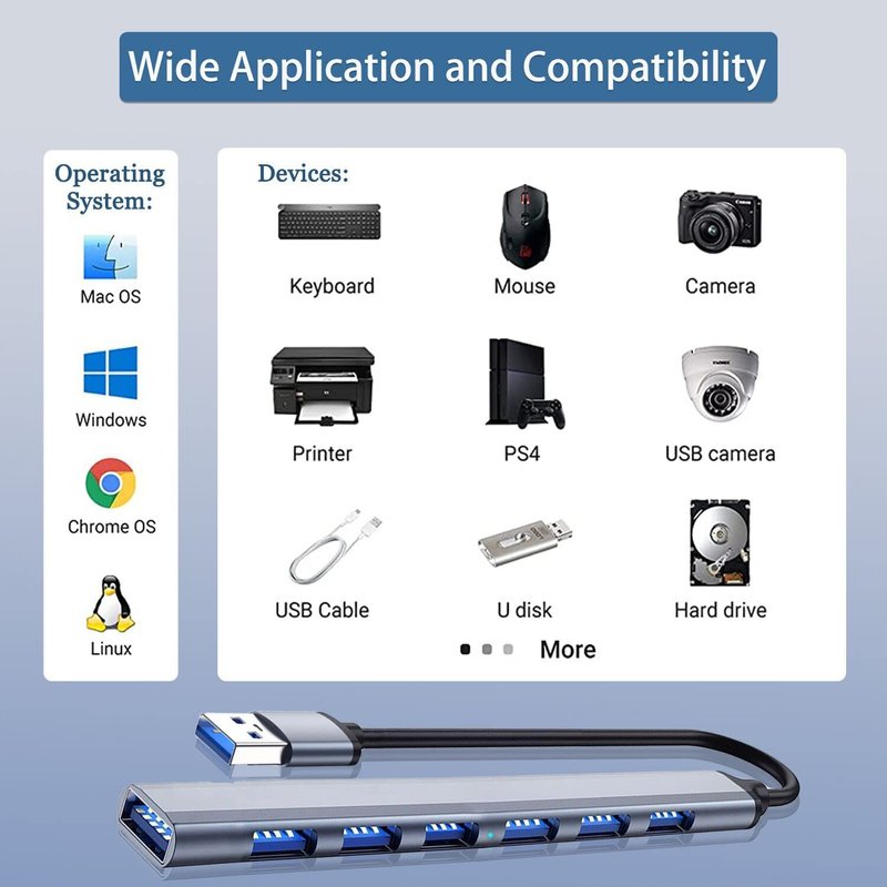- 【Great Compatibility and Easy to Use】: Fully plug and play without any drivers. Compatible with Windows 10/8/8.1/7 / Vista / XP and Mac OS X, Linux and Chrome OS. ( The Usb 3.0 Hub Reverse Compatible USB 2.0 and USB 1.1.)