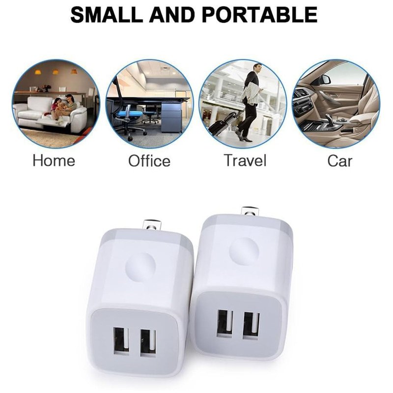 USB Wall Charger, FiveBox 2Pack Dual Port 2.1Amp Fast Brick Base Adapter Charging Block Charger Cube Plug Charger Box for iPhone 16 Pro Max 15 14 13 12 11 Pro X 6 6S 7 8 Plus, iPad, Samsung, Android
