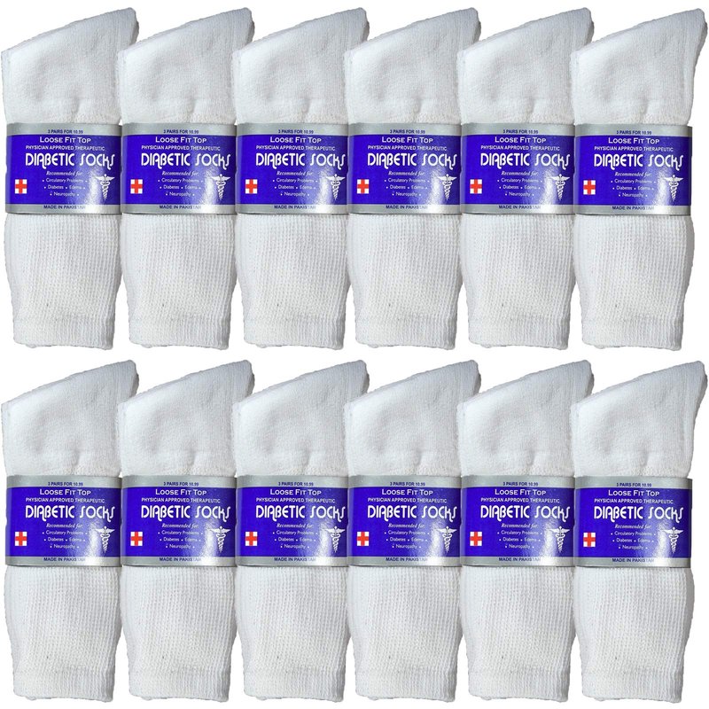 USBingoshop 12 Pairs Mens Physicians Approved Crew Diabetic Socks Cotton 10-13 (12 Pairs D-White)