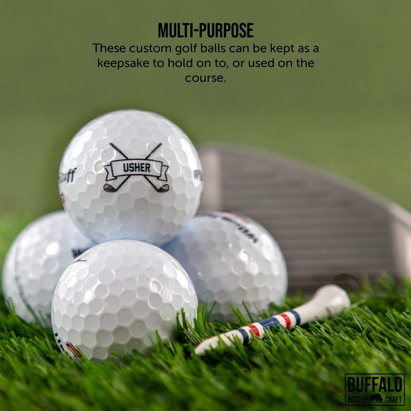 One sleeve of Wilson Staff Elite Golf Balls with "Usher" printed across 2 crossed clubs. These make a simple gift for the Best Man in your wedding. Printed in Buffalo, NY with a UV Digital Printer.