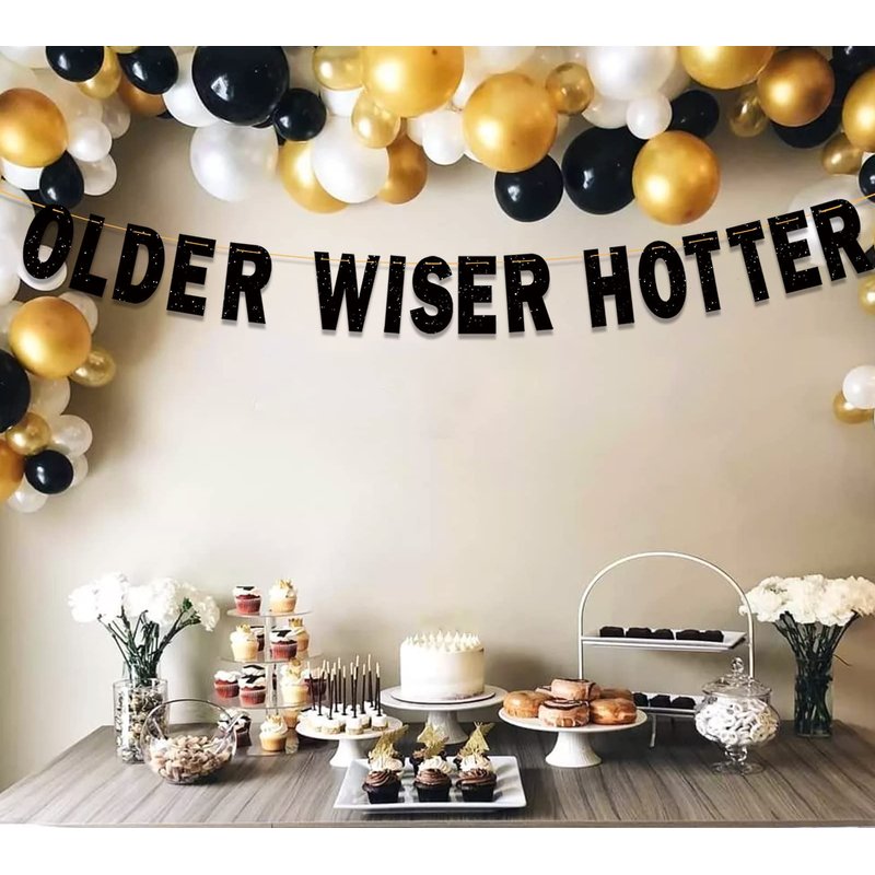 - Unique Design: The Older Wiser Hotter banner with funny and interesting content is one of the essential decorations for your birthday. It’s so funny and will definitely make a deep impression.