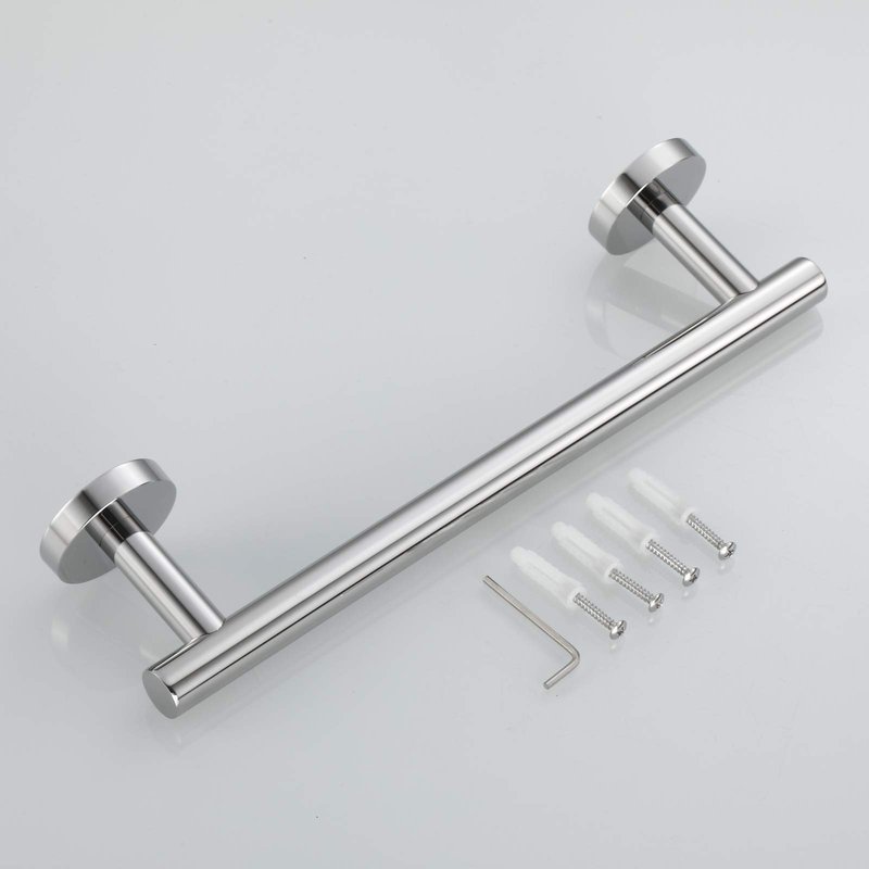 USHOWER Polished Chrome Hand Towel Bar, 9-Inch Towel Racks for Bathroom Wall-Mounted, SUS304 Stainless Steel Towel Rod (Total Length 12-Inch)