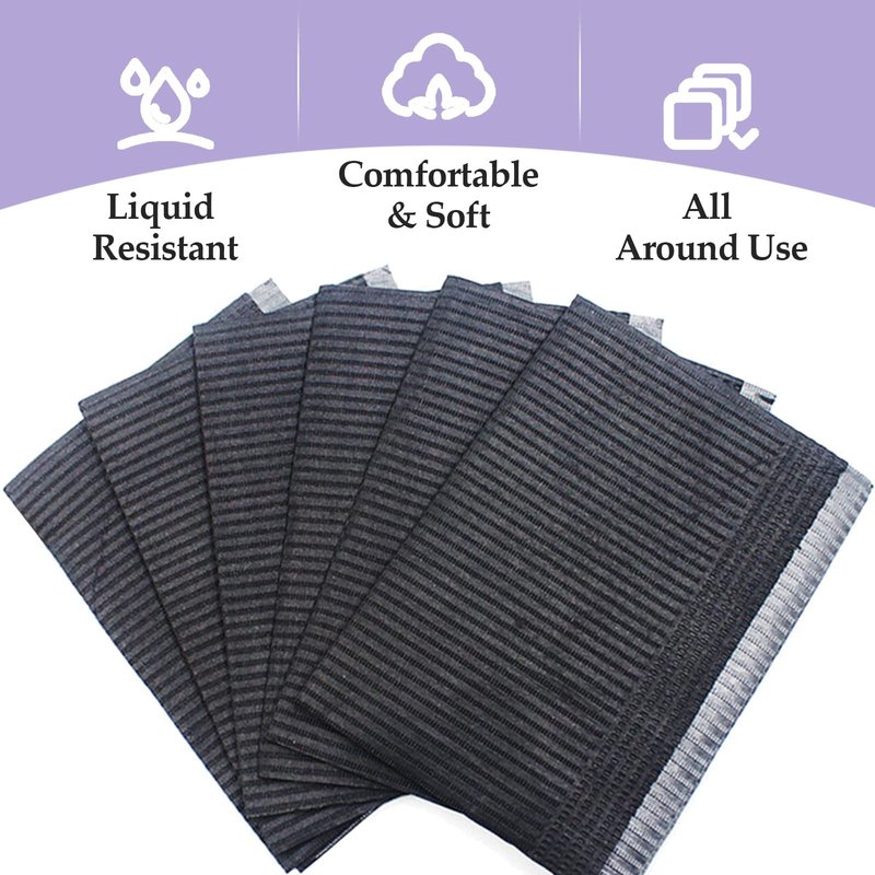 Dental Bibs - Usiriy 50Pcs Disposable Bibs Table Covers Patient Bibs Tray Covers 3 Ply Dental Bibs Sheets Cloths Waterproof Bibs Supplies Black Microblading Supplies