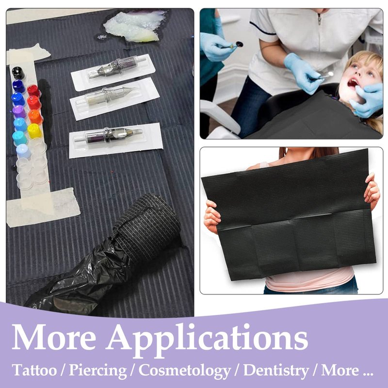 - MULTIPLE APPLICATIONS: These absorbent tattoo dentist bibs napkin are commonly used as dental bibs, tattoo bibs, body piercing, nail art, microblading, beauty care, table covers and tray cover. Ultimate multi-tasking tattoo tool, durable and hygiene