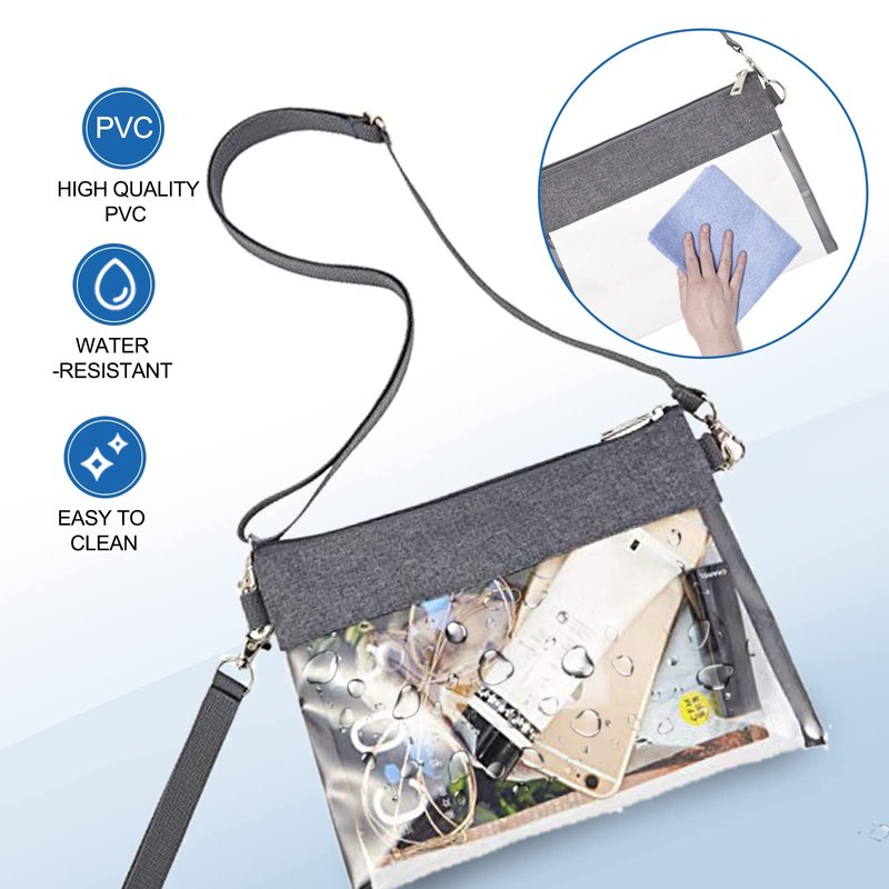 USPECLARE Clear Crossbody Purse Bag Stadium Approved Clear Tote Bag for Work Concert Sports(Grey